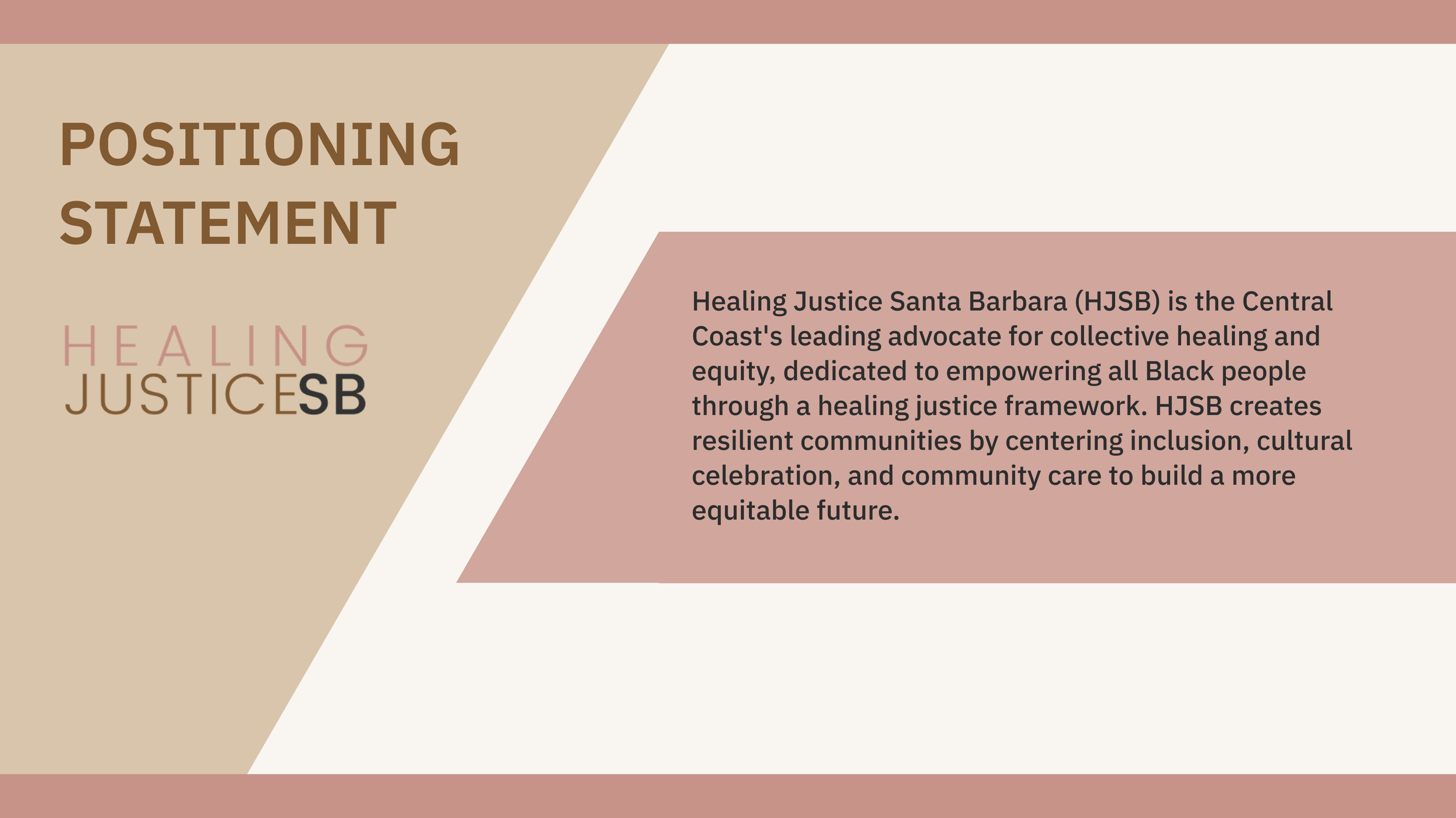 Healing Justice Santa Barbara (HJSB) is a nonprofit that empowers Black/African American communities along California's Central Coast through collective healing, advocacy, education, and collaboration to dismantle systemic oppression and promote equity and solidarity. HJSB seeks to expand their efforts to their primary and secondary target audiences in Ventura and Lompoc, California.