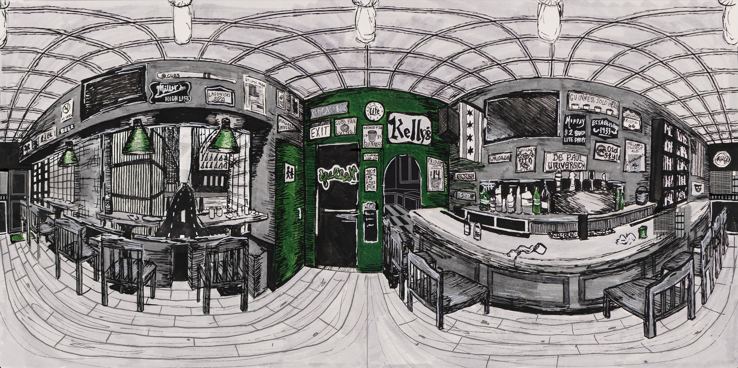 Kelly’s Tavern, 2024Pen and Colored Pencil on Paper, Curvilinear PerspectiveEnter this drawing through VR on Flickr WORK ← WORK ← WORK ← ABOUT → ABOUT → ABOUT →